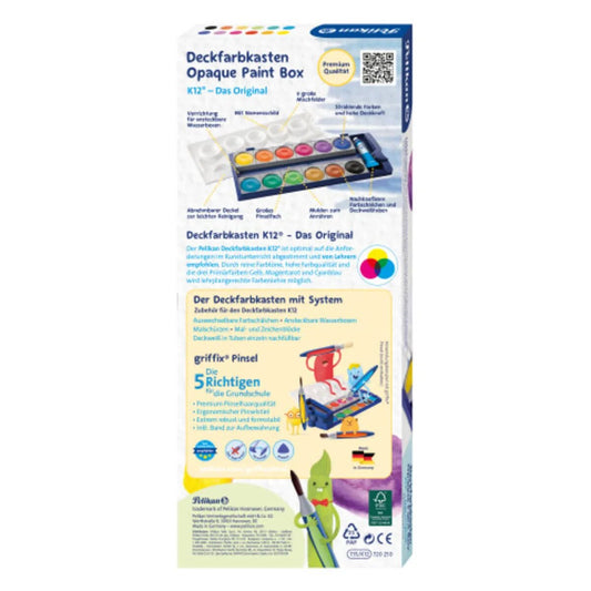 Pelikan Deckfarbkasten K12, 12 Farben 1 Tube Deckweiß, blau