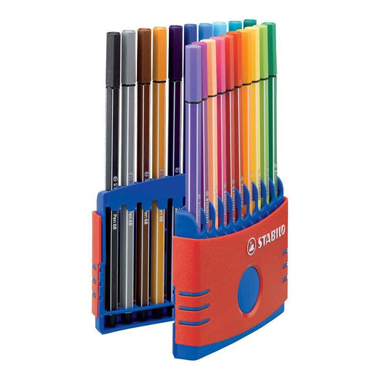 Premium-Filzstift - STABILO Pen 68 ColorParade - 20er Tischset in rot/blau - mit 20 verschiedenen Farben