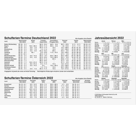 Glocken Taschenkalender Kalendarium 2022, 10 x 14 cm, 1 Stück, farblich sortiert