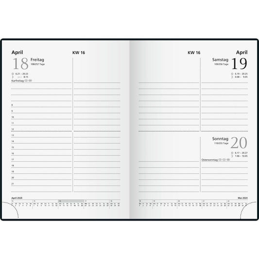 Glocken Buchkalender 14,8 x 20,5 cm (B x H) 1 Woche/2 Seiten Miradur schwarz