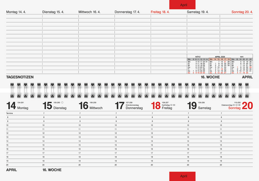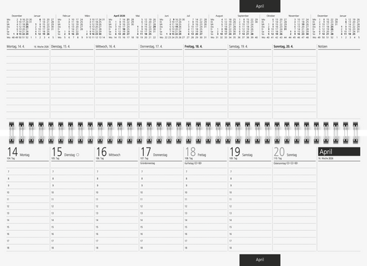 BRUNNEN Querterminbuch Jahr 2026 307×105 mm Karton weiß Mod. ac-Wochenquerterminer