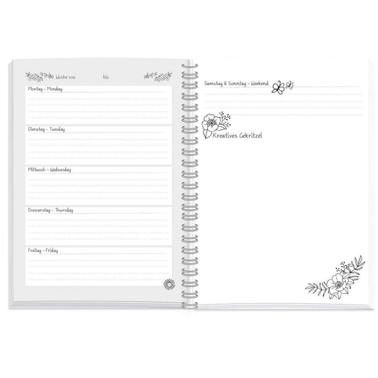 Roth Scribble Timer 2.0, Wire-O-Bindung, 1 Woche 2 Seiten + extra Ausmalseiten, immerwähren
