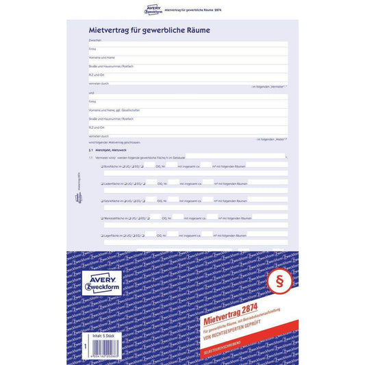 Avery Zweckform 2874 Mietvertrag für gewerbliche Räume, A4, 6-seitig, mit Durchschlag