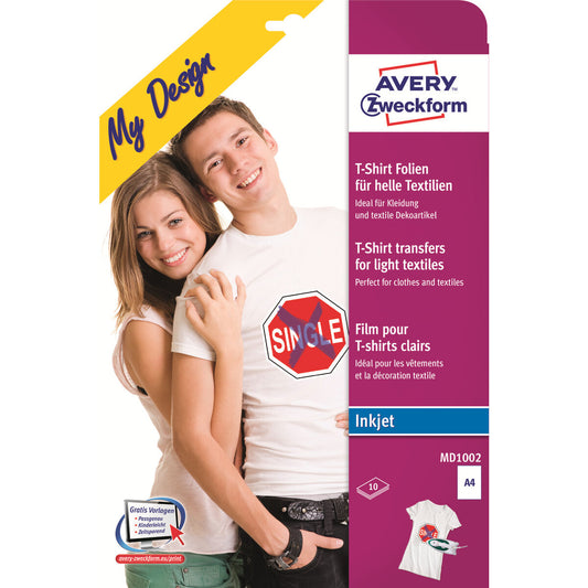 Avery Zweckform MD1002 Transferfolien für helle Textilien, 10 Bogen