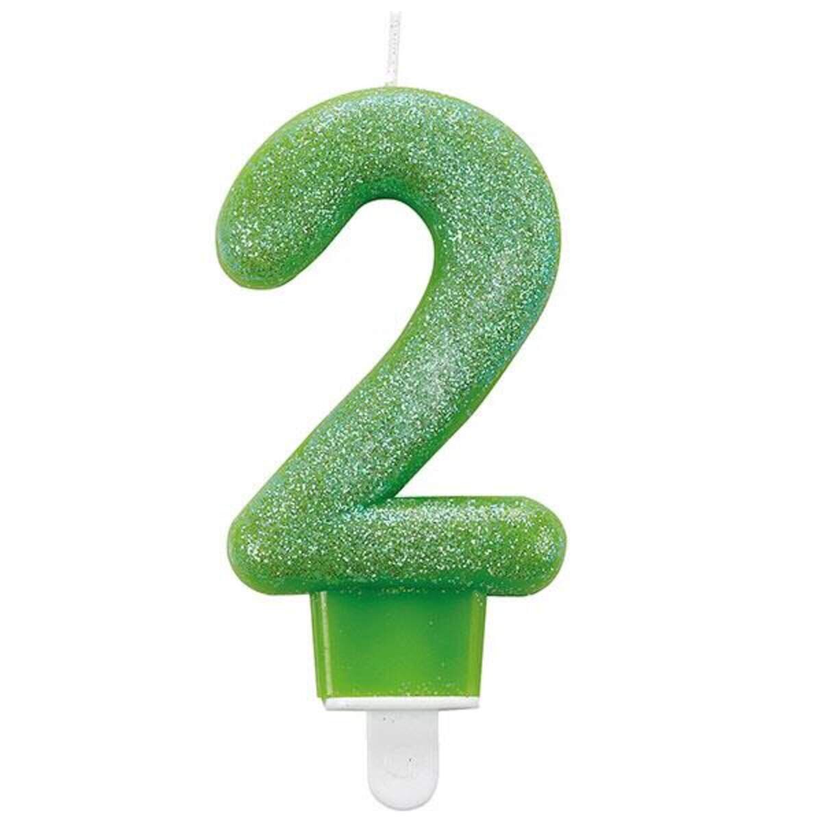 amscan Zahlenkerze Geburtstagskerze 2 grün mit Glitzer 7,6cm