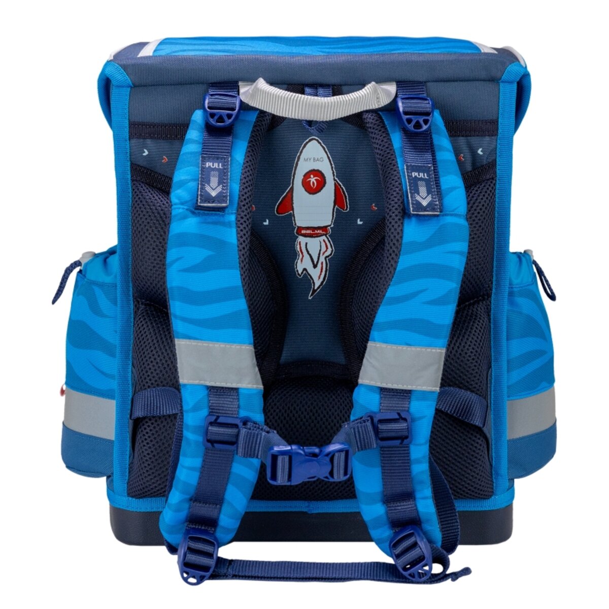 Belmil Classy Schulranzen Set, der Topseller unter den Belmil Schulranzen. Dieses Modell wiegt nur 860-950 g und besteht aus hochwertigen, starken und wasserdichten Materialien. Der Schulranzen wird mit einem Schlampermäppchen, einem Federmäppchen (nicht gefüllt) und einem Turnbeutel geliefert FEDERMÄPPCHEN (UNGEFÜLLT) Qualitativ hochwertiges Federmäppchen mit zwei Klappen. Das Innenfach ist mit zwei Klappen versehen, die auf der Vorderseite zwei durchsichtige Hülle umschließen, von denen eine einen praktischen gedruckten Stundenplan enthält. Elastische Halter für: • Stifte – 27 Stk. • Linieal – 1 Stk. • Radiergummi – 1 Stk. • kleiner Spitzer – 1 Stk. Folienhüllen für Stundenplan - 2 Stk. Größe: 14 x 20,5 x 3,5 cm Material: Polyester SCHLAMPERMÄPPCHEN Es ist modern, oval geformt und bietet ausreichend Platz für zusätzliche Stifte. Mit einem robusten Reißverschluss versehen. Größe: W: 8 x H: 20 x D: 7.5 cm Material: Polyester TURNBEUTEL MIT REISSVERSCHLUSS UND NETZEINSATZ Der Turnbeutel von Belmil eignet sich perfekt für sportliche Aktivitäten. Der Inhalt kann einfach mit einem Kordelzug befestigt werden. Sie ist sehr leicht und platzsparend. Es wurde ein zusätzliches Reißverschlussfach hinzugefügt. Dank dem luftdurchlässigen Netzeinsatz am Rückenbereich eignet sich perfekt zum Transportieren von Schuhen. Hergestellt aus robusten Materialien. Größe: 43 x 45 cm Material: Polyester LEICHTGEWICHT UND DENNOCH HALTBAR UND ROBUST „Classy“ wiegt nur 850 – 940 g und wurde aus qualitativen, robusten und wasserfesten Materialien hergestellt. Beachten Sie: Das exakte Gewicht des Artikels kann um + / - 5% variieren. ERGONOMIE Dank der ergonomischen Form und der atmungsaktiven Rückenpolsterung wird die Wirbelsäule Ihres Kindes entlastet. Die Schultergurte sind angenehm gepolstert und lassen sich kinderleicht stufenlos verstellen, wodurch der bequeme Gebrauch im Alltag gewährleistet ist. *Der abnehmbareBrustgurt kann seperat erworben werden. Empfohlen von Doktoren und Spezialisten „Belmil Schulranzen sind aus orthopädischer und anatomischer Sicht, ausgezeichnet“ urteilte Prof. Dr. Mészáros Tamás von der Orthopädischen Abteilung der Universität Szeged, Ungarn. SEITENTASCHEN Eine Getränkeflasche (bis zu 0,7 l) und ein kleiner Regenschirm können einfach in den Seitentaschen verstaut werden. GERÄUMIGE INNENFÄCHER Im Innenraum befinden sich praktisch aufgeteilte Fächer, die den Kindern helfen, ihre Schulsachen besser zu organisieren. Es gibt hier 3 große Innenfächer. in die Schulhefte und Bücher aller Größen perfekt hineinpassen. HALTBARKEIT Die Verstärkungen an allen Seiten und der feste Unterteil erhöhen die Stabilität und Haltbarkeit. Der Kunstoffboden hat zusätzliche Funktionen: er verhindert, dass die Tasche umkippt, schützt vor Verschmutzung und hält den Inhalt auch bei Regenwetter trocken. SICHERHEIT Mit dem Belmil Schulranzen ist die Sicherheit Ihres Kindes garantiert. Der Ranzen ist an allen Seiten mit reflektierenden Elementen ausgestattet, damit Ihr Kind auch im Dunkel sicher unterwegs sein kann. EXTRA AUSSTATTUNG Auf dem Deckel befinden sich 2 Haltegriffe mit unterschiedlichen Verwendungszwecken: Ein Griff ist mit Gummi überzogen, damit auch Kinder die Tasche leicht und bequem in den Händen halten können und der zweite Griff dient dazu, die Tasche im Klassenzimmer aufzuhängen. ?