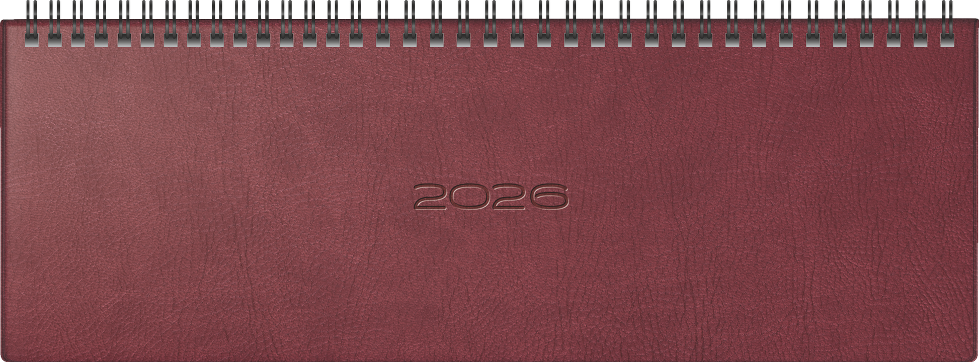 Blattgröße: 305×105 mm 2 Seiten = 1 Woche, Stundeneinteilung von 7-20 Uhr 128 Seiten, Druckfarbe Kalendarium: grau/rot 80 g/m², Wire-O-Bindung Kunstleder-Einband Prestige, Hardcover, Farbe: braun Jahresübersicht aktuelles Jahr und Folgejahr, 3 Seiten Monatsübersicht Folgejahr (Januar bis Juni), Ferientermine Deutschland, 9 Seiten Wissenswertes, 6 Seiten Adressen mit gedruckten Monatstaben an der unteren Längsseite für Kalenderjahr 2026