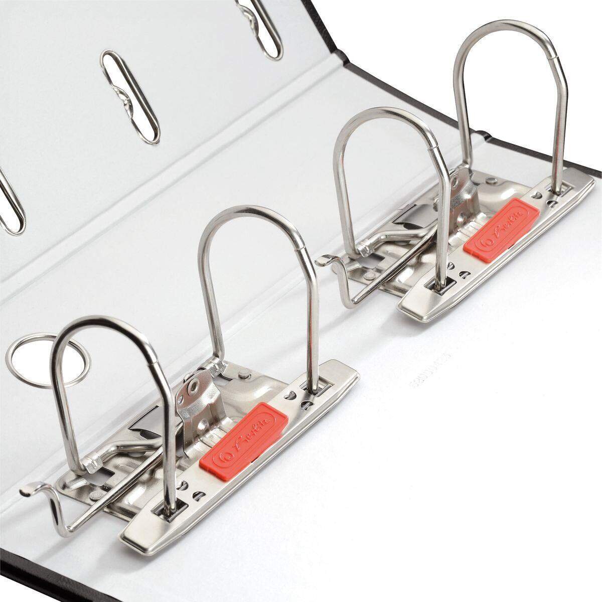 Akten ordnen leicht gemacht: Die verbesserte Qualitäts-Hebelmechanik zeichnet sich durch eine extreme Zuhaltekraft aus und dank weichem Gummitip lässt sich der Ordner noch angenehmer öffnen und schließen.