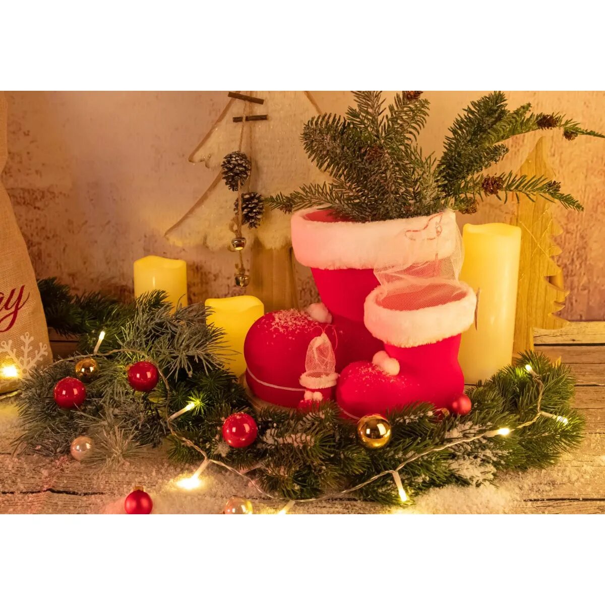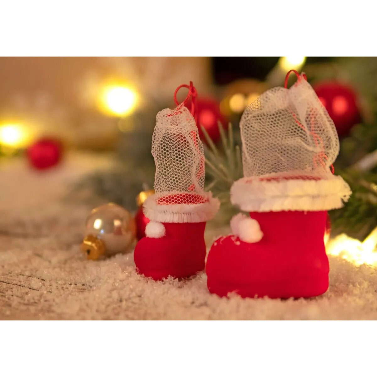 Der Idena Nikolausstiefel ist das perfekte Accessoire für die Weihnachtszeit! Dieser Stiefel ist mit einem zusammenziehbaren Netz ausgestattet, welches Platz für kleine Geschenke und Süßigkeiten bietet. Das beflockte Material und die Plüschverzierungen verleihen dem Stiefel ein gemütliches Aussehen und sorgen für eine festliche Atmosphäre. Der Stiefel ist rot/weiß und besteht aus robustem Kunststoff, was ihn langlebig macht. Mit einer Größe von 5,7 x 5 x 3,2 cm passen genügend Leckereien hinein. Das Set enthält 10 Stück, so dass du genügen Stiefel hast, um deine Familie und Freunde zu überraschen. Hole dir jetzt den Idena Nikolausstiefel und mache deine Weihnachtsfeier noch schöner!