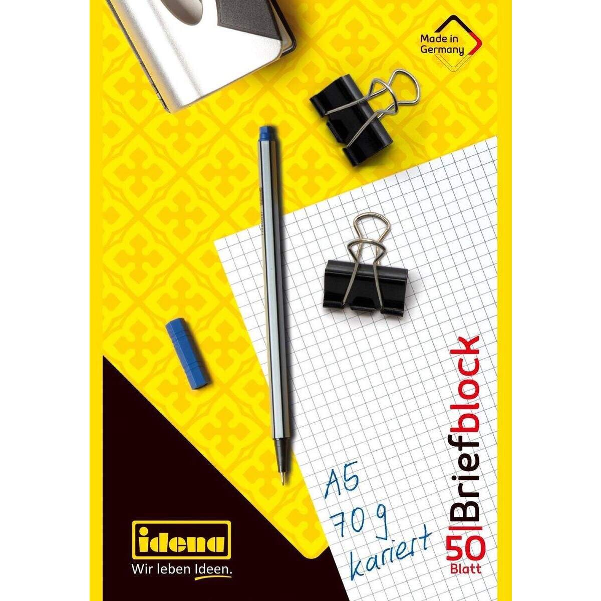 Idena Briefblock, DIN A5, 50 Blatt, 70 g, kariert, kopfgeleimt
