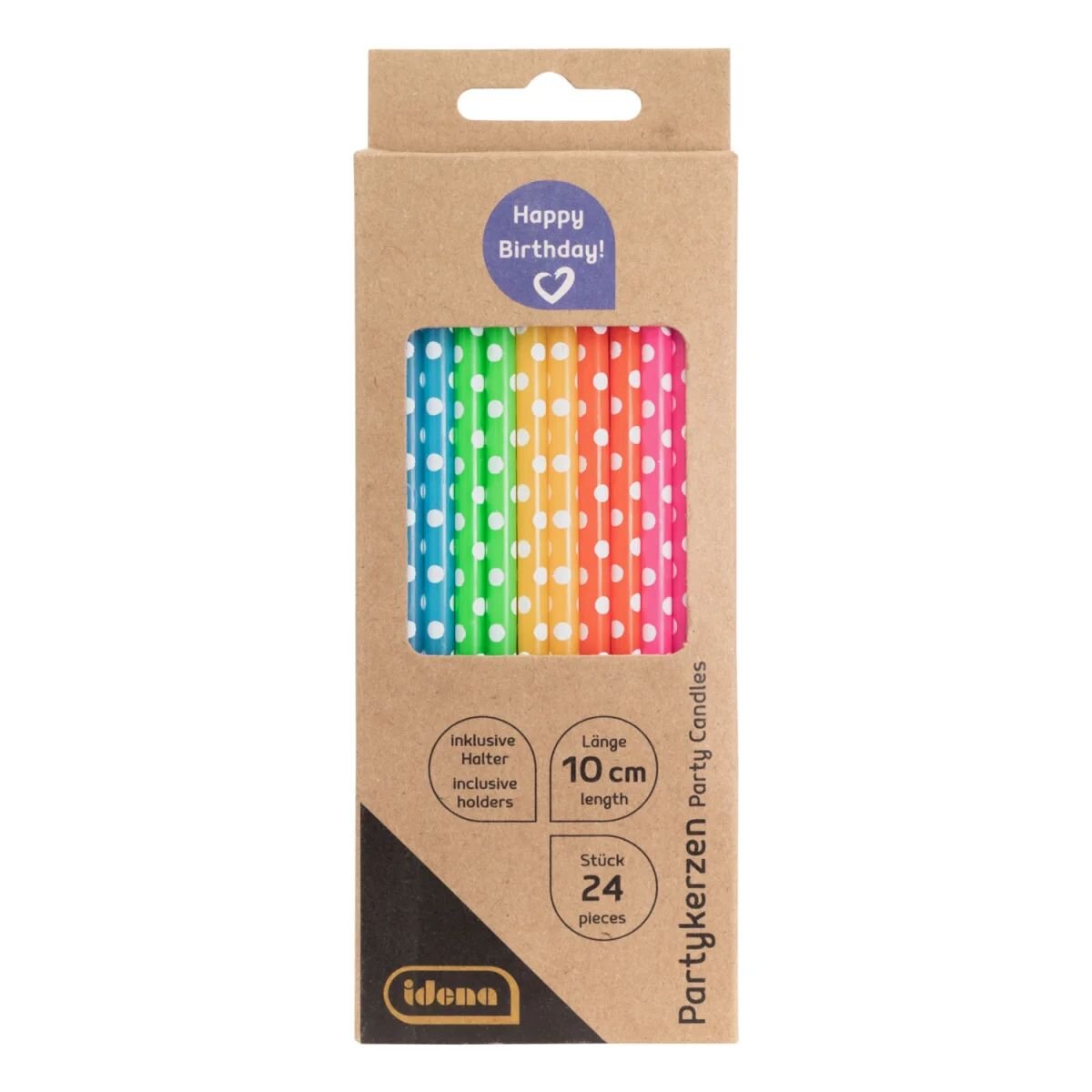 Idena Partykerzen - bunt mit weißen Punkten, 24 Stück