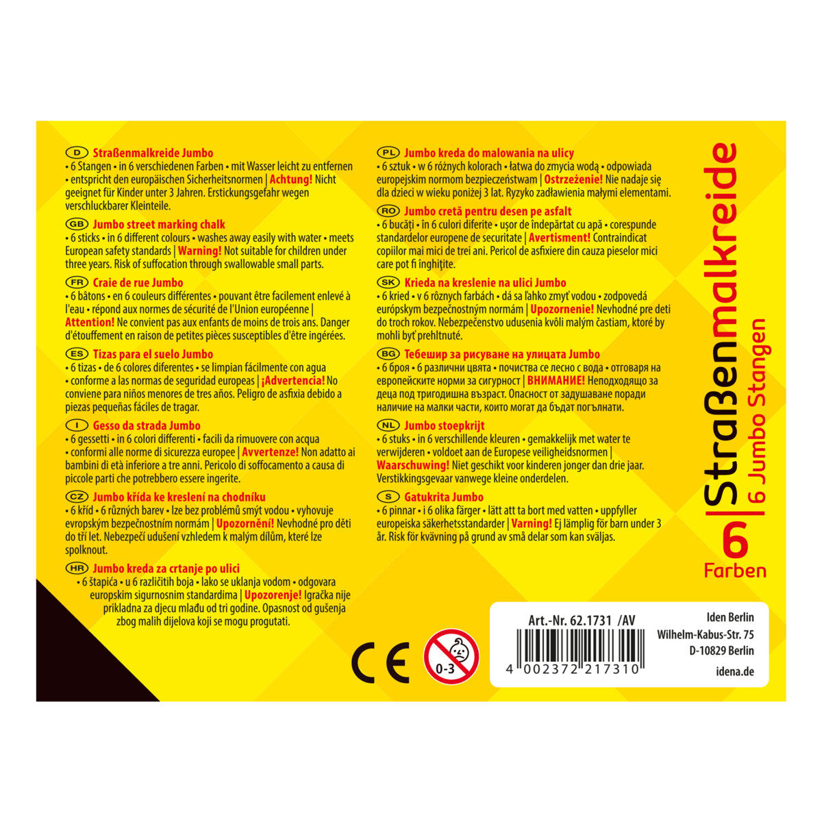 Idena Straßenmalkreide Jumbo, 6 Stangen, ca. 11 cm