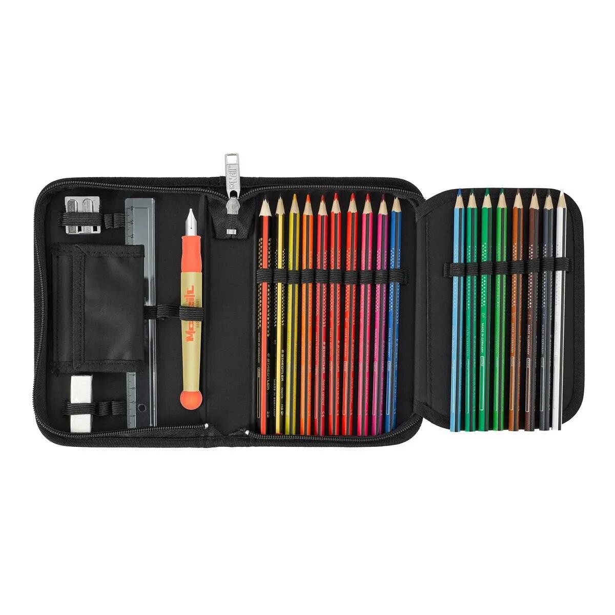 Das gefüllte McNeill Etui ist der perfekte Begleiter für die Schule. Das Etui ist mit vielen hochwertigen Stiften, einem Radiergummi und Anspitzer gefüllt. Das Etui lässt sich sicher verschließen und somit gut im Schulranzen transportieren.