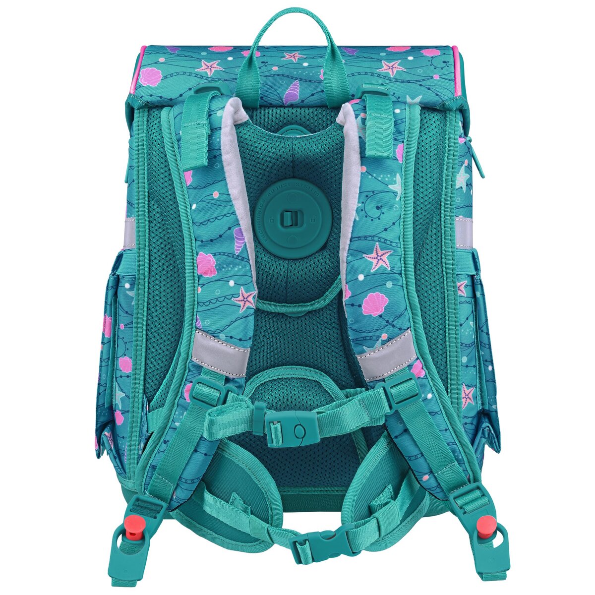 Der McNeill Primo Seafish vereint spielerisches Design und durchdachte Funktionalität in einem leichten, ergonomischen Schulranzen. Mit dem verspielten Meeresmotiv in Türkis, zwei austauschbaren McAddys, einer pinkfarbenen Brotdose und Trinkflasche ist das Set perfekt für Mädchen, die Seepferdchen und bunte Unterwasserwelten lieben.