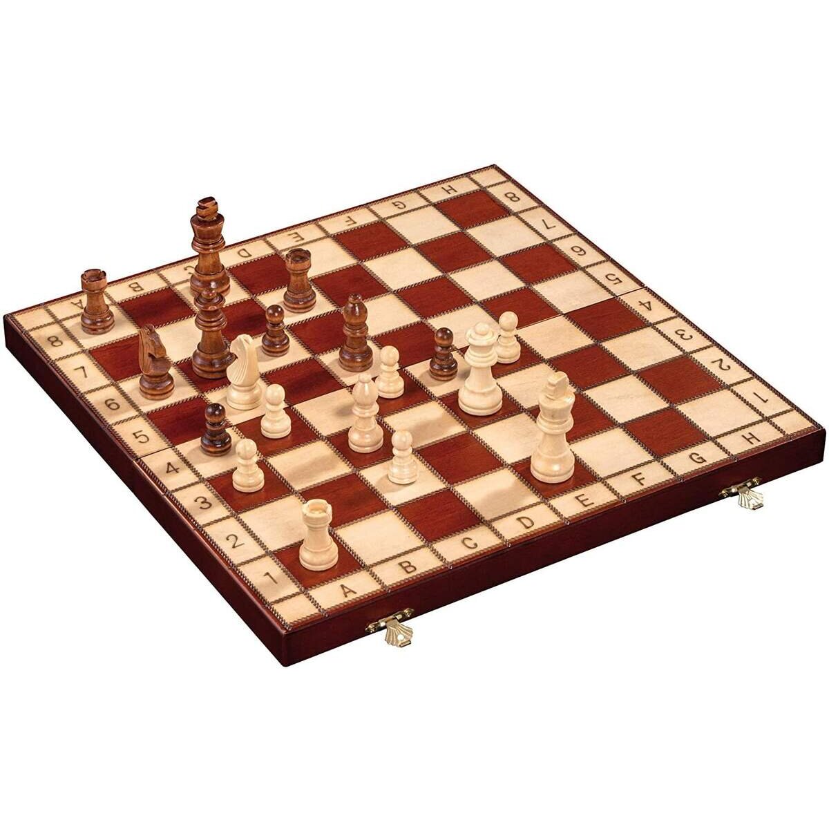 Edles Schachbrett perfekt zum Verstauen und für den Transport aufgrund der Möglichkeit das Schachbrett zusammen zu klappen.