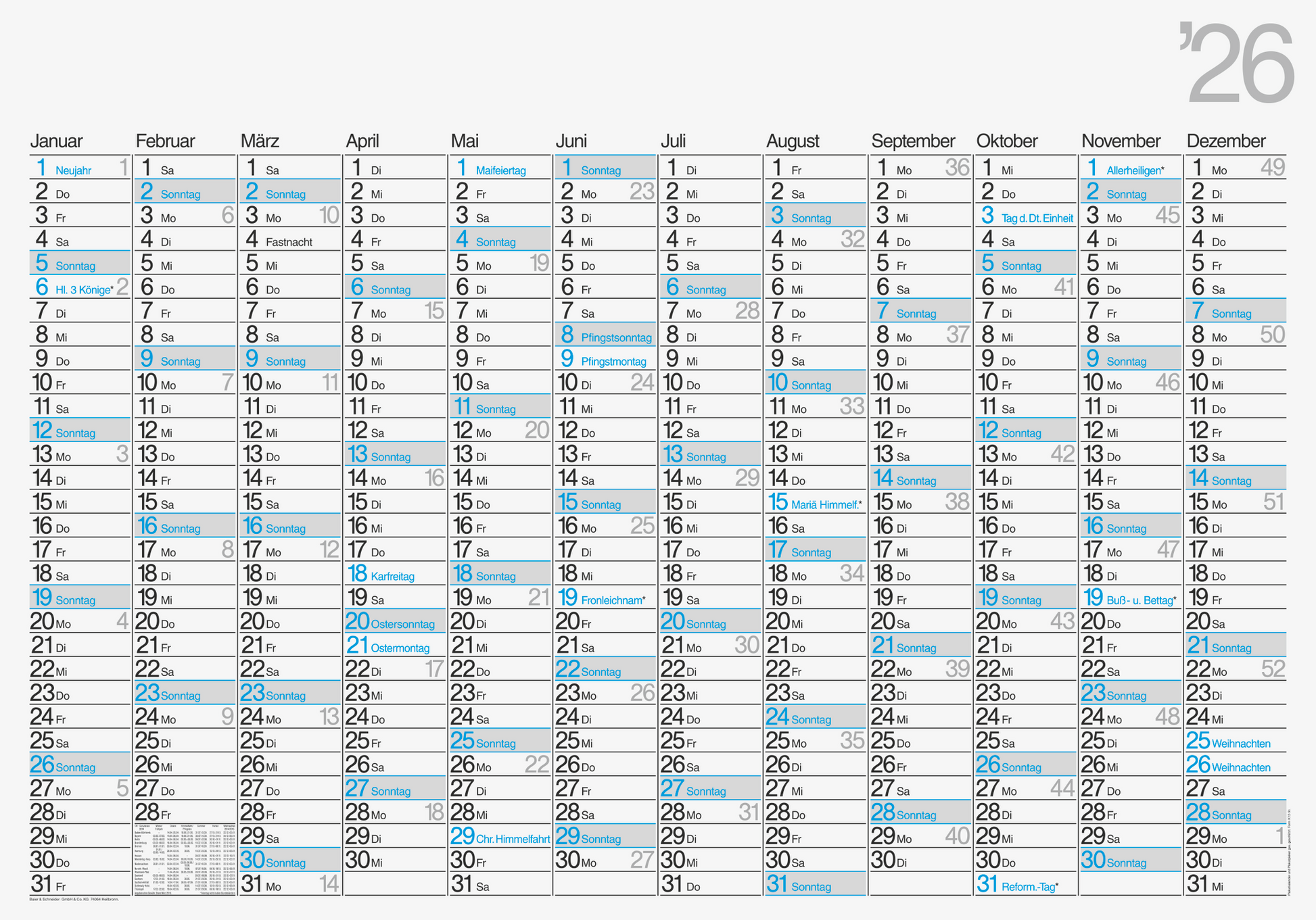Plakatkalender Mod. 701 02 2026 | 980×680 mm