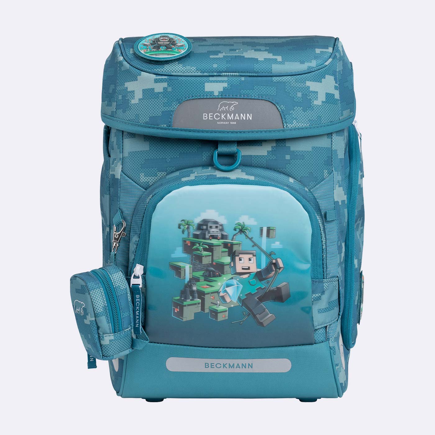 Alle Designs haben außerdem eine wendbare Vordertasche, mit der der Ranzen sein Aussehen in Sekundenschnelle ändern kann. Kinder haben unterschiedliche Wünsche und die ändern sich im Laufe der ersten Schuljahre. Wir möchten diesen Wünschen gerecht werden. So kann der Ranzen bei Bedarf auch neutraler gestaltet werden!