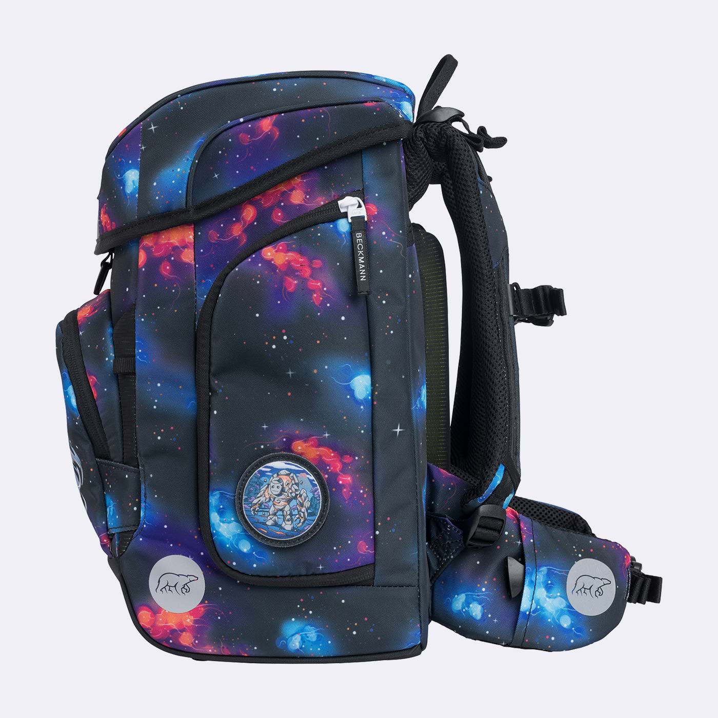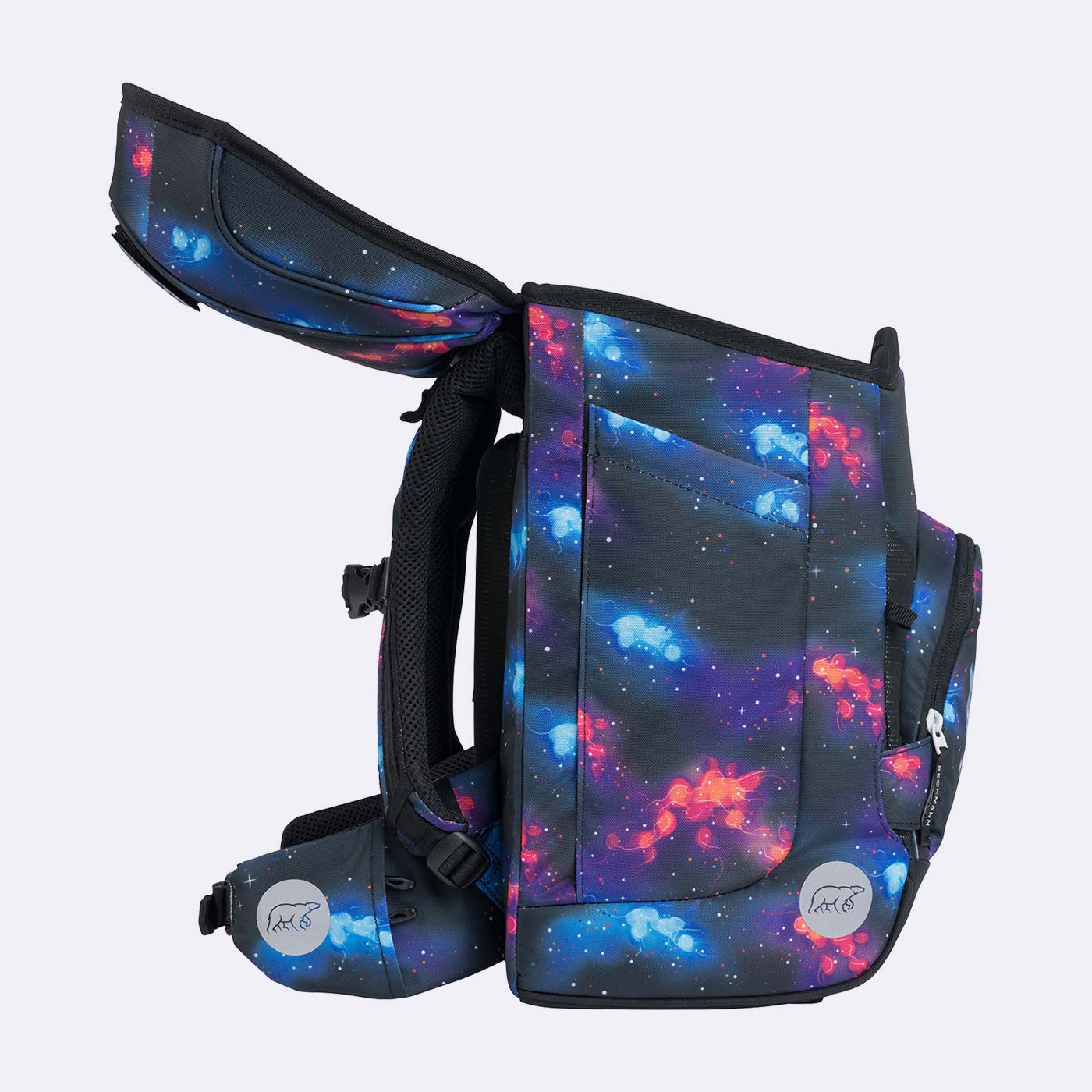 Der Ranzen hat einen robusten, flachen Boden, sodass er mühelos stabil und aufrecht steht, feste Wände und einen praktischen Deckel mit Magnetverschluss, der einfachen Zugang und optimale Übersicht ermöglicht, ohne Kompromisse bei der Ergonomie einzugehen. Plus Air ermöglicht freie Bewegung der Arme, sodass die Kinder auch mit dem Ranzen auf dem Rücken bequem erkunden und spielen können.