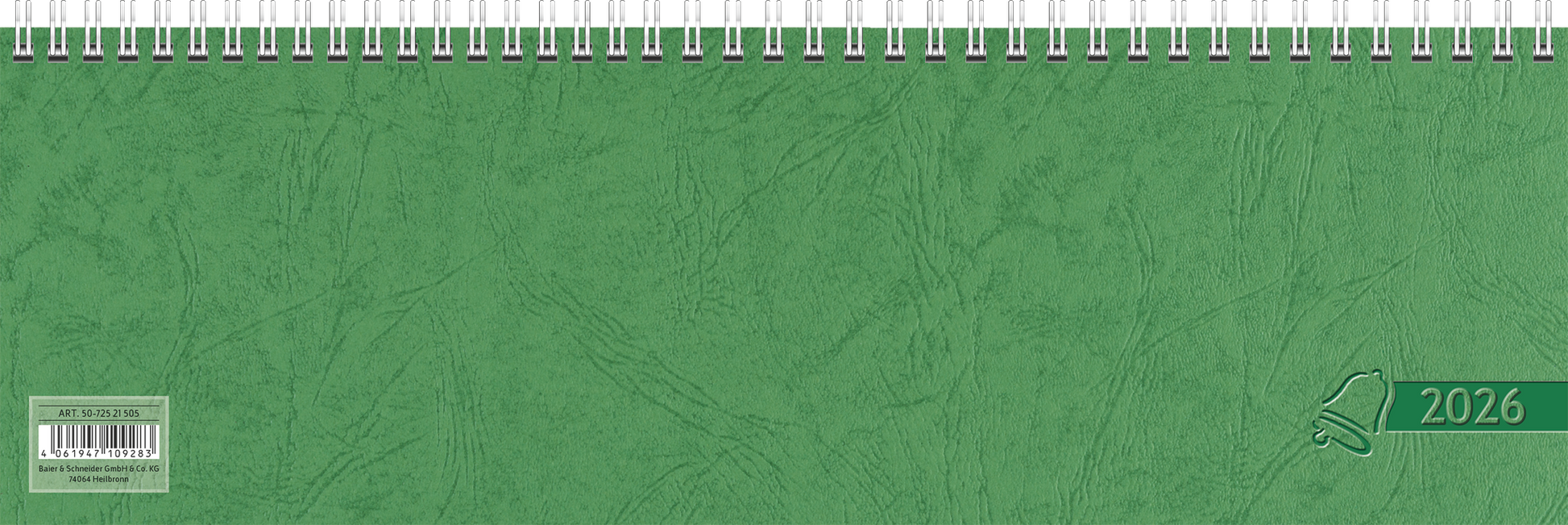 Querterminbuch 2026 | 326×102 mm, Karton, grün