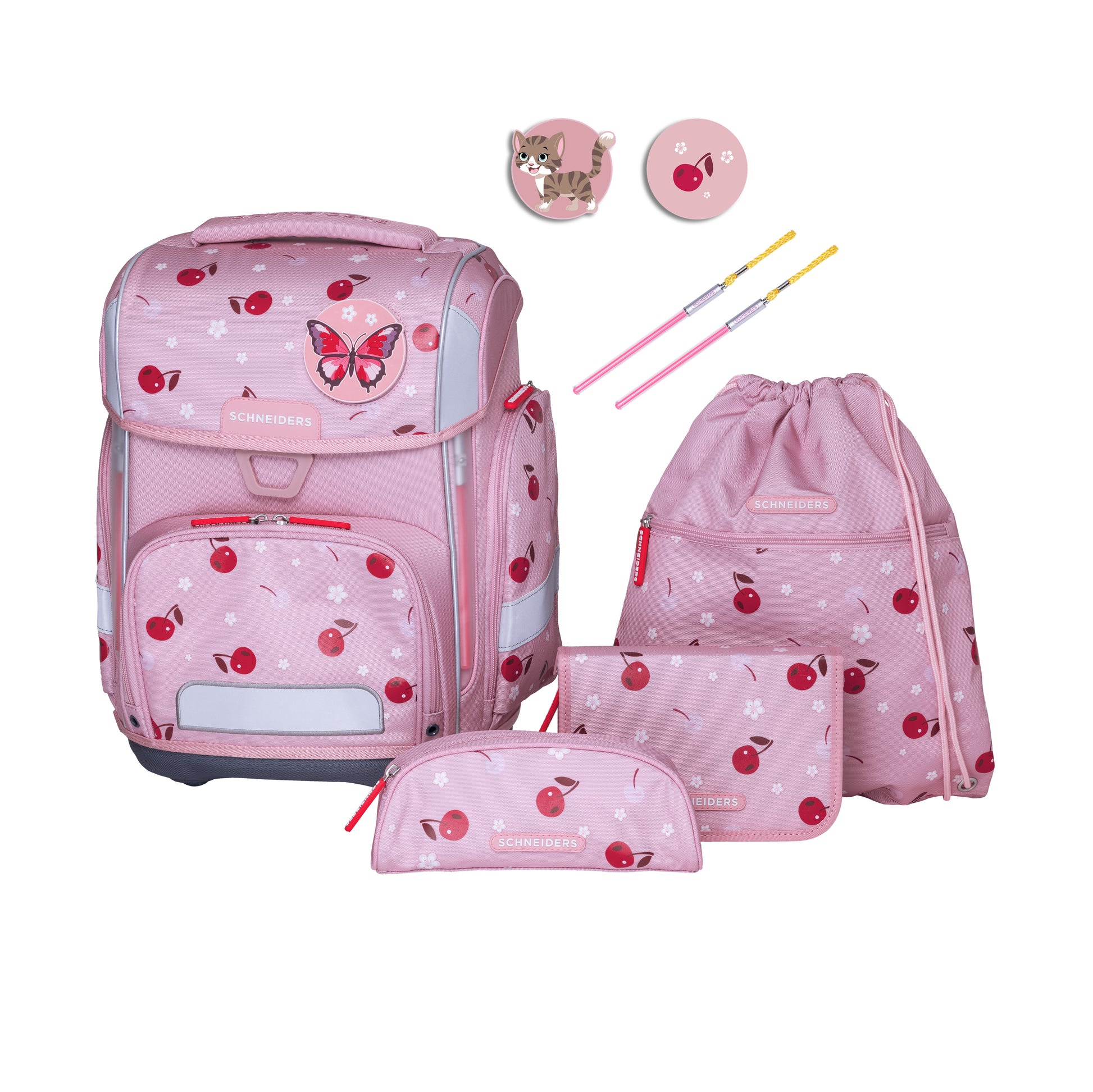 9 teiliges Schultaschen Set Modell Cherry Pop für Mädchen: