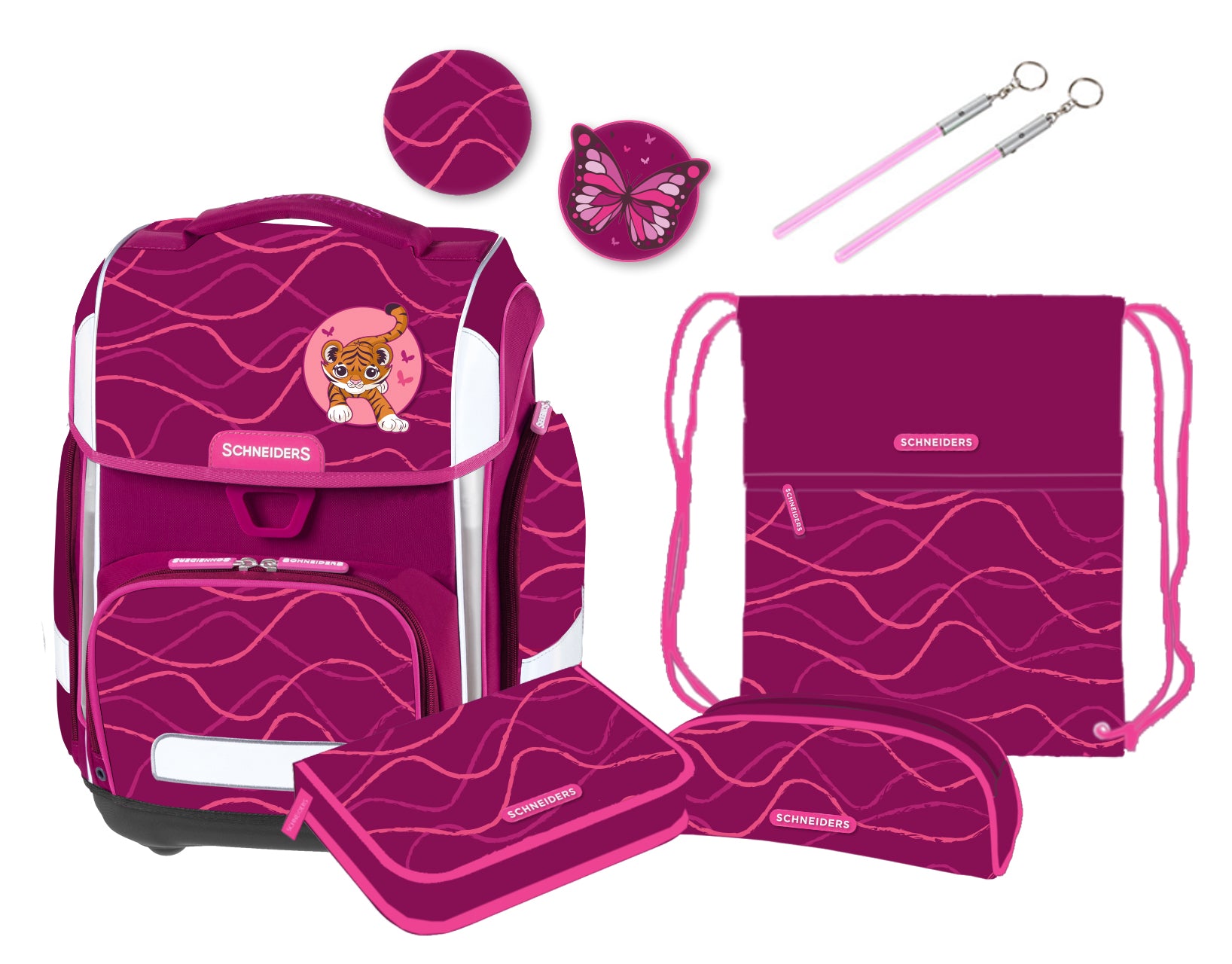 Alles für den perfekten Schulstart: Ergonomische Schneiders Ergolite Schultasche, Federpennal & Schüttelpennal, Turnbeutel, 3 austauschbare Patches, 2 LED-Leuchtstäbe