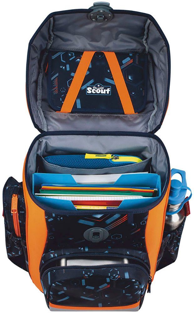 Hier kommt der stabile Genius! Er verfügt über ein großes Packvolumen, sitzt ergonomisch und sorgt mit retroreflektierenden und fluoreszierenden Flächen nach DIN 58124 für besonders gute Sichtbarkeit. Das Beste aber: Sportbeutel, Federmäppchen mit Staedtler Qualitätsbuntstiften, Schlamperetui, 2 coole Funny Snaps Move und 1 Anhänger sind inklusive. Mit dem Genius wird jeder Schultag zu einer magischen Reise ins Zauberland.