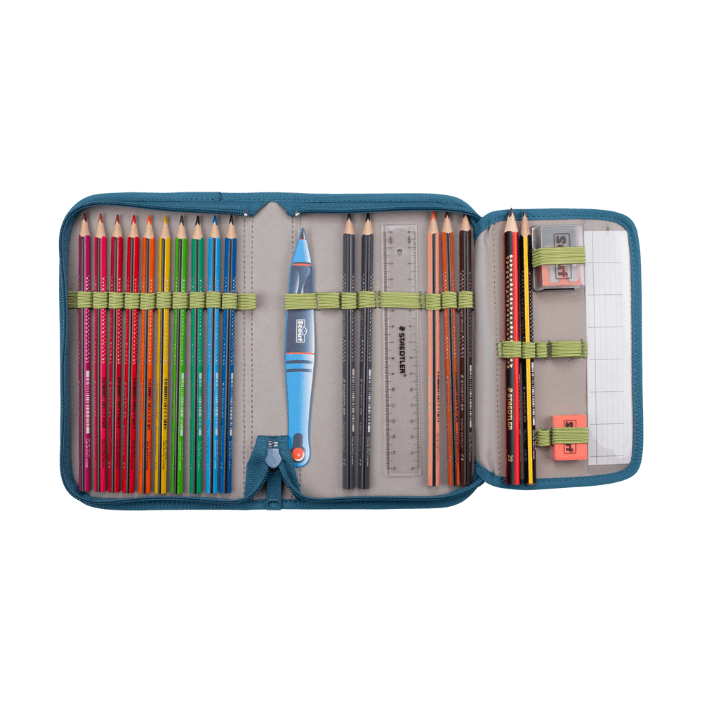 Hier kommt der softe Alpha! Er ist geräumig, sitzt ergonomisch und sorgt mit retroreflektierenden und fluoreszierenden Flächen nach DIN 58124 für besonders gute Sichtbarkeit. Das Beste aber: Sportbeutel, Federmäppchen mit Staedtler Qualitätsbuntstiften, Schlamperetui, 2 coole Funny Snaps Move und 1 Anhänger sind inklusive. Mit dem Alpha wird jeder Schultag zu einer magischen Reise ins Zauberland.