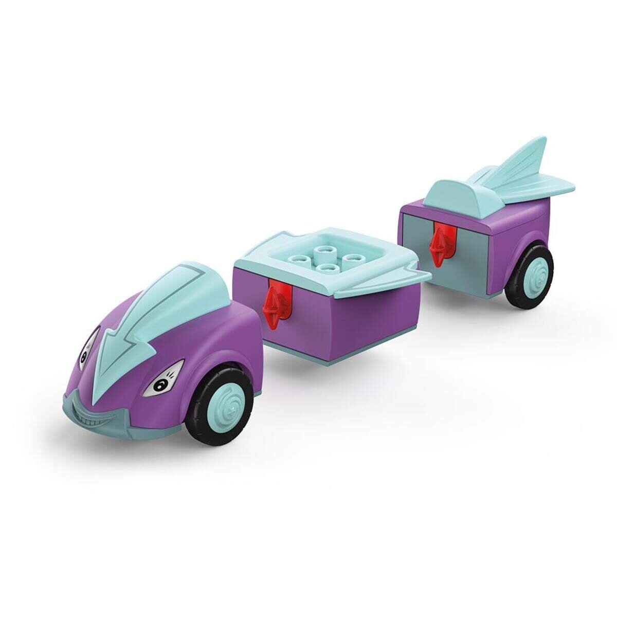 Diese lassen sich genauso wieder lösen, mit den Bauteilen an-derer Toddys kombinieren und somit immer wieder neue Charaktere schaffen. Der Sitz und die Figuren sind kombinierbar mit den bekannten Bausteinen anderer Hersteller. Das Kombinieren der Namen regt zudem das Sprachverständnis an. Eines ist allen gemein: der Friktionsmotor im Heck: einfach anschieben und loslassen!