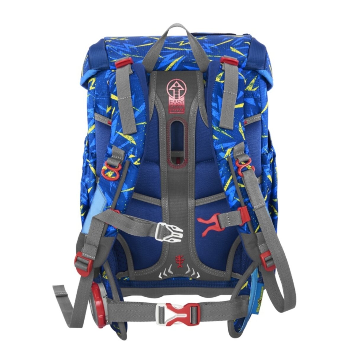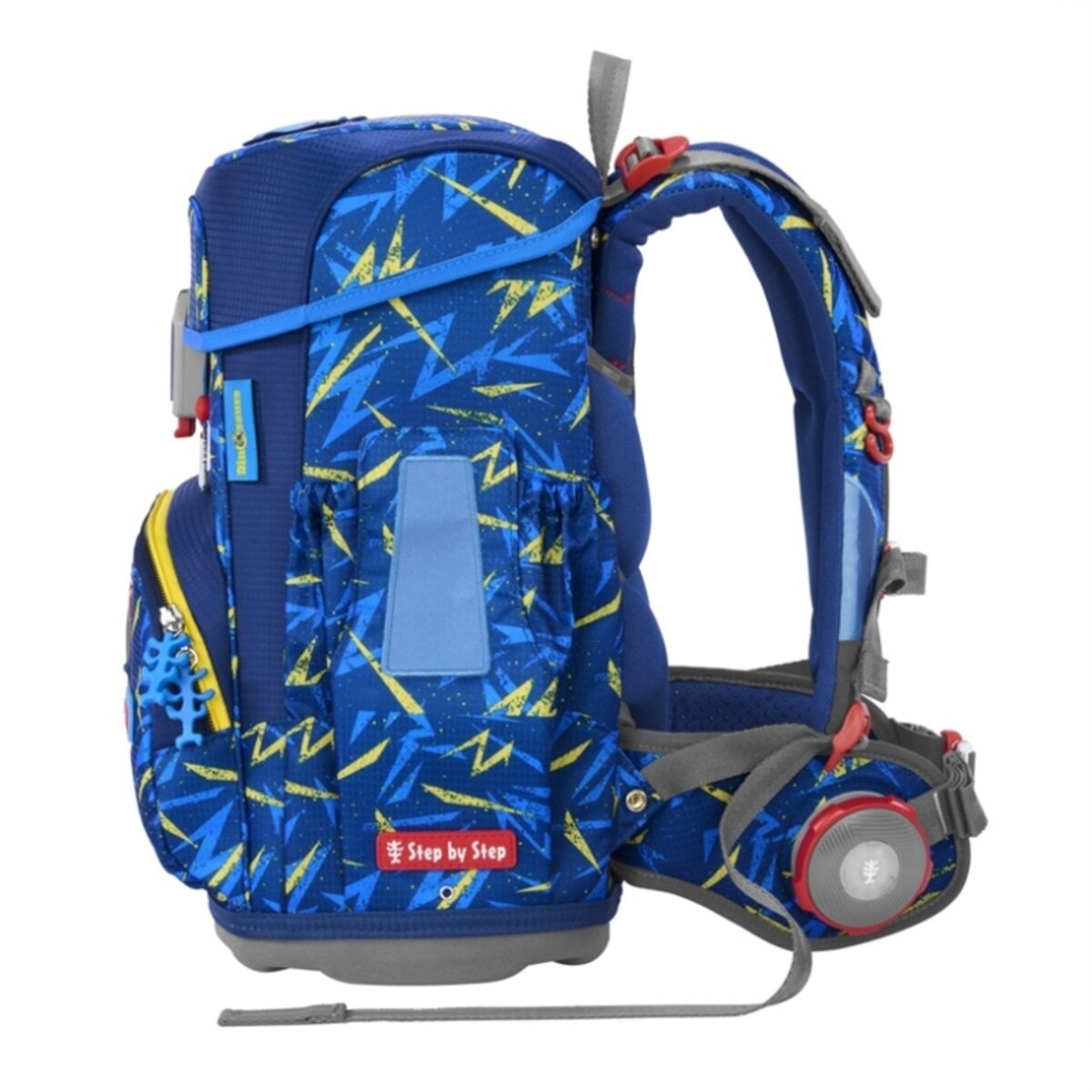 Tragekomfort/Ergonomie Ultraleichte Rückenkonstruktion aus Fieberglas Anatomisch geformte Schulterträger, höhenverstellbar (EASY GROW SYSTEM) Lageverstellriemen Höhenverstellbarer, abnehmbarer Brustgurt Abnehmbarer Hüftgurt Ergonomisch geformte Rückenpartie Atmungsaktives Rückenpolster Verstaumöglichkeiten Hauptfach mit integriertem Bücherfach Nach außen wachsende Vordertasche mit Auslaufösen Zwei offene, nach außen wachsende Seitentasche mit Auslaufösen Laschen zur Fixierung des Federmäppchens unter dem Deckel Sicherheit Reflektierende Elemente aus an Fronttasche, Seitentaschen und Schultergurten Weitere Features Leicht bedienbarer Fidlock-Magnetverschluss Aufhängungen zum Verstauen der Enden der Schulterriemen Aufhängeschlaufe Namens- und Adressfeld im Deckel Stabile, wasserdichte Bodenplatte Kleines Fach mit Schlüsselanhänger im Hauptfach Lieferumfang 1 Schulranzen 1 Federmäppchen, komplett bestückt mit Markenstiften 7 Jumbo-Markenstifte 12 Farb-Markenstifte 1 Bleistift 1 Step by Step Lineal 1 Step by Step Geodreieck 1 Step by Step Doppelspitzer 1 Radiergummi 1 Schlampermäppchen 1 Turnbeutel 1 Set MAGIC MAGS (2 Applikationen und 1 Anhänger)