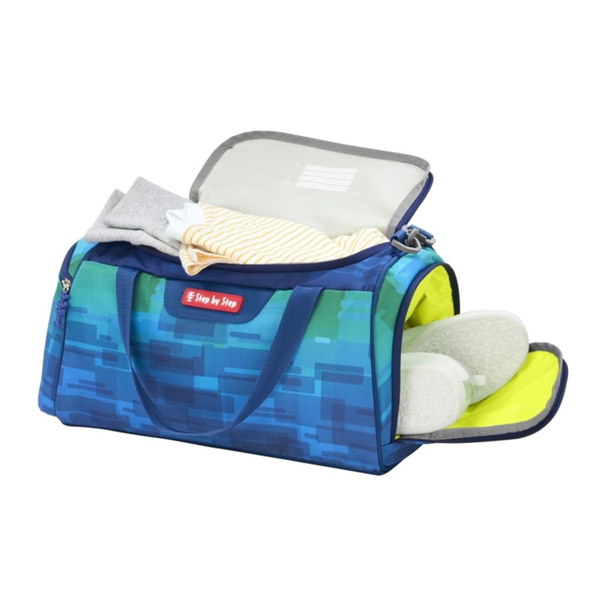 Überblick Hauptfach mit Rundbogenreißverschluss Flache Seitentasche mit Reißverschluss Nasswäschefach/Schuhfach Abnehmbarer, verstellbarer Tragegurt Tragehenkel Lieferumfang 1 Sporttasche 1 Tragegurt