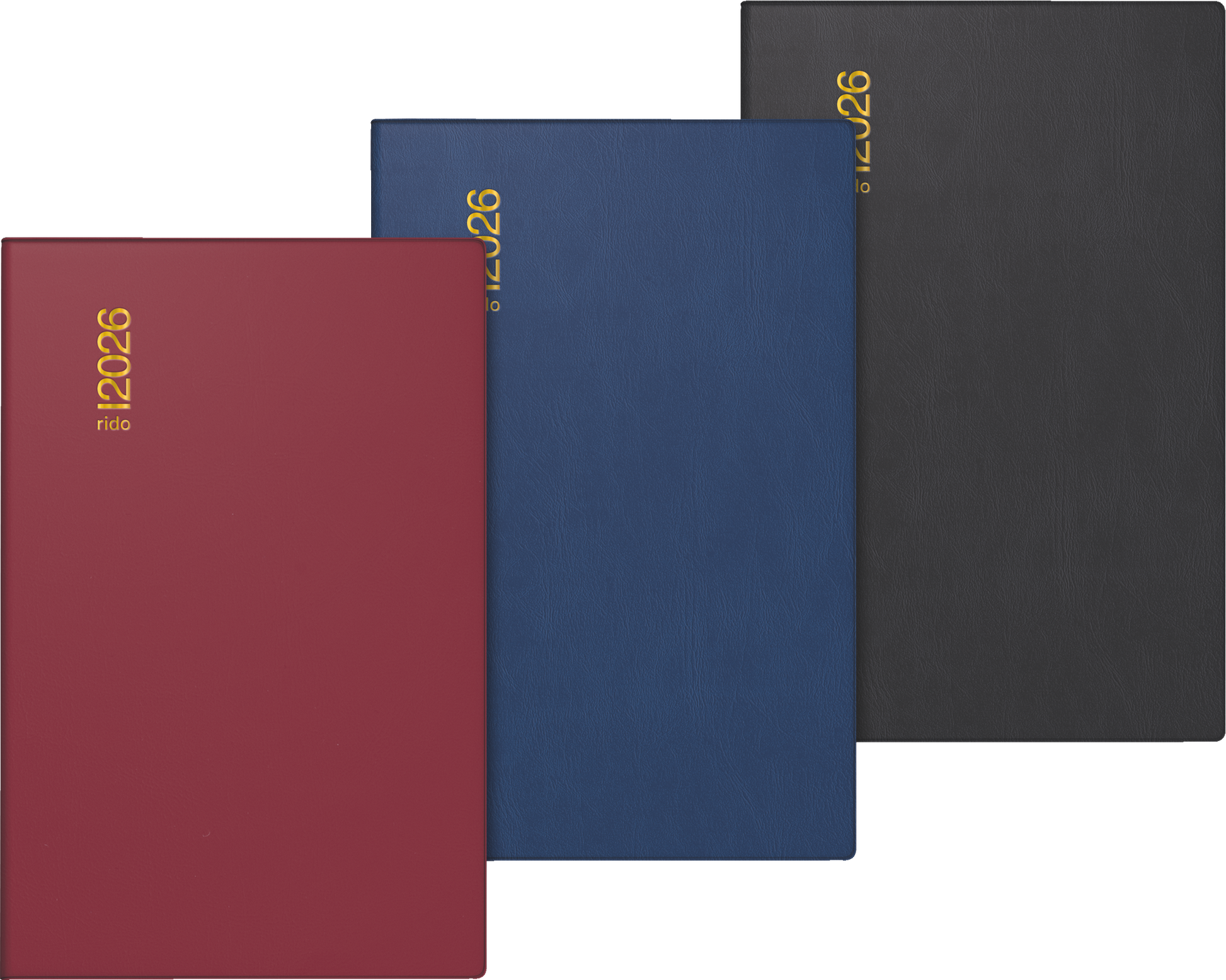 - Kunststoff-Einband, Sortierung: 3 Farben (bordeaux, dunkelblau, schwarz)