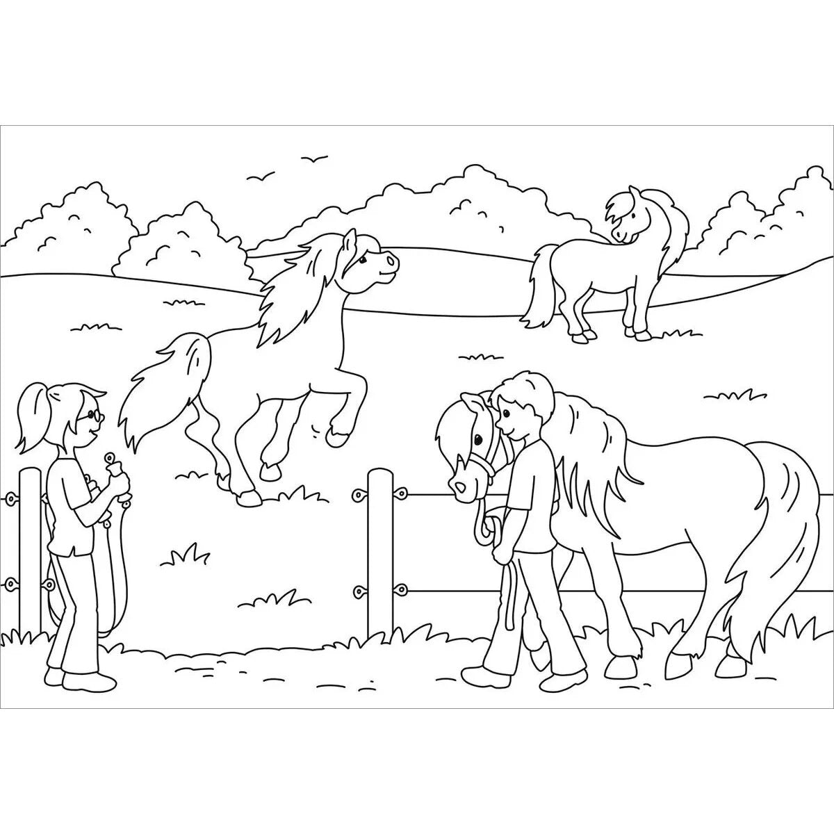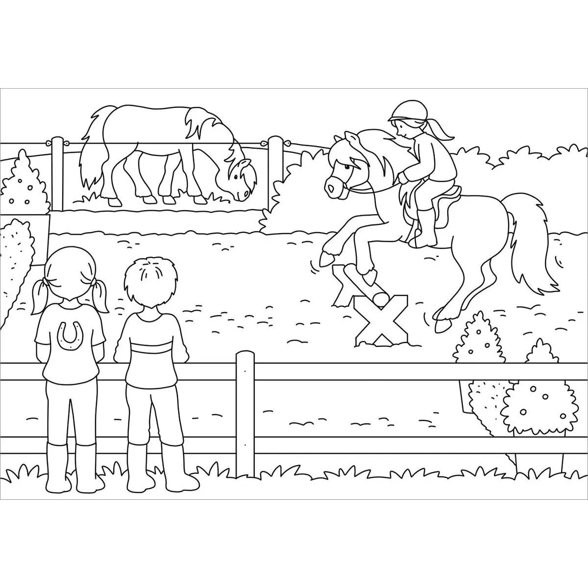 Komm mit auf den Ponyhof! Mit dem Pony im Stall, auf der Weide oder beim Turnier - auf jeder Doppelseite ist eine Ponyhof-Szene zum Ausmalen. Mit Buntstiften, Filzstiften oder Wachsmalkreiden werden die Geschichten lebendig. Niedliche Details erfreuen die Kinder und lassen die Geschichten lebendig werden. Für Pony- und Pferdefans ab 5 Jahren.