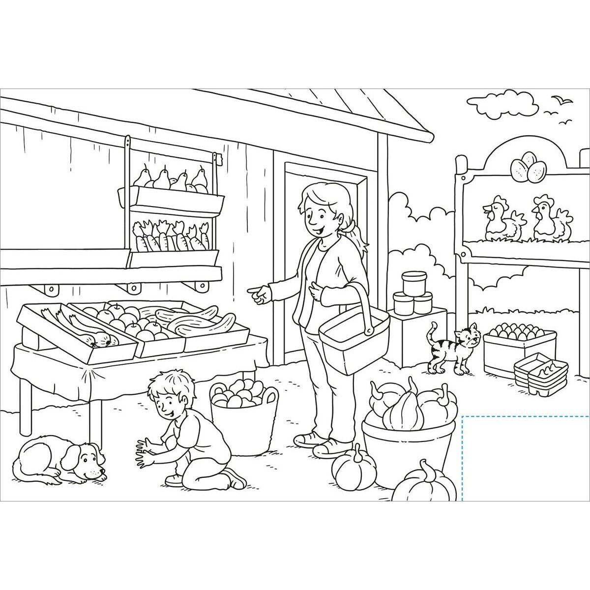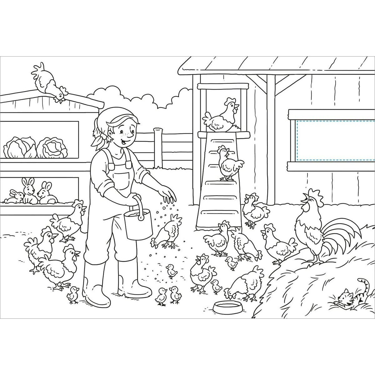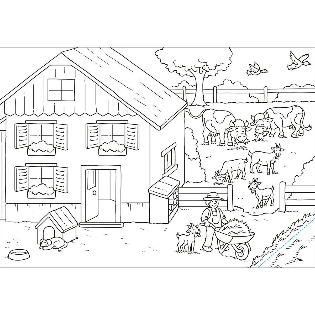 Auf dem Bauernhof gibt es viel zu entdecken. Ein Mähdrescher auf dem Feld, Kälbchen beim Trinken und viele weitere fröhliche Motive warten darauf, ausgemalt zu werden. Doch es gibt noch mehr Überraschungen: Mit einer farbigen Schneidelinie gekennzeichnete Flächen verbergen weitere lustige Motive. Was befindet sich hinter dem Scheunentor? Einfach mit einer Schere aufschneiden und entdecken! Und ganz nebenbei üben die Kinder den Umgang mit Stift und Schere. Interaktiver Malspaß für Kinder ab 5 Jahren.